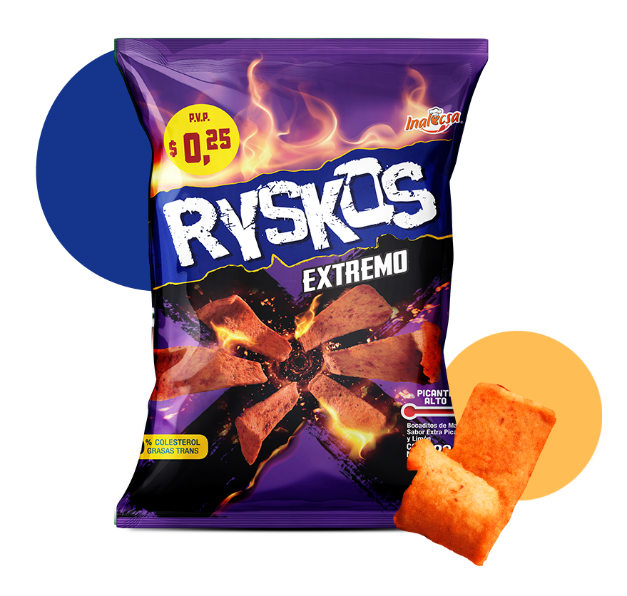 mix de bocaditos de maíz, plátano, chicharrón y harina de trigo con sabor picante.